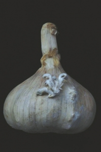大蒜上长出来的白参。图据人民日报