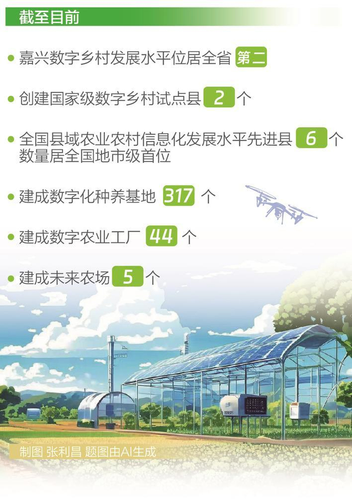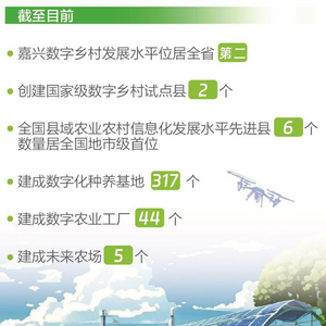 农业生产实现5G智能远程监控;农产品销售管理后台监控大数据管理成为指挥棒;小农户服务等网上平台成为众多农户的最爱……在如今的嘉兴,现代化农业长足发展,在农业生产领域的各个环节,都能看到数字赋能带来的巨大变化。记者从嘉兴市农业农村局了解到,截至目前,嘉兴数字乡村发展水平位居全省第二;创建国家级数字乡村试点县2个;全国县域农业农村信息化发展水平先进县6个,数量居全国地市级首位;建成数字化种养基地317个、数字农业工厂44个、未来农场5个。