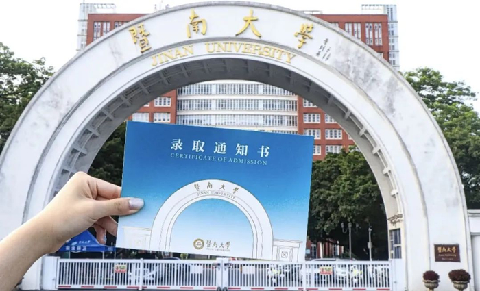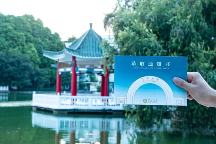 “一艘红色帆船,跨越山海,向你奔赴!”暨南大学2024年本科录取通知书以海蓝绿、落霞棕、中国红为核心色彩进行设计。在通知书封面上印制了暨南大学标志性白色拱门,象征着这座百年侨校以博大的胸怀欢迎新生的到来。