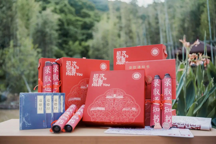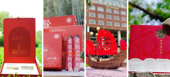 除了精美的录取通知书,大礼包内还装有文创帆布袋、定制鼠标垫、纪念徽章、校园地图等各式礼品。