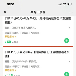 牛背山官方售票平台显示,观光车为0元
