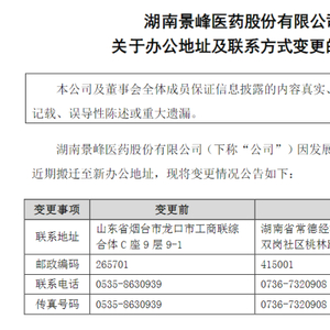 然而,就在2024年3月14日公司突然更换了办公地址,将办公地址由山东省龙口市变更至湖南省常德市。