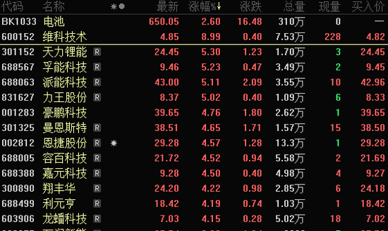 赛道板块早盘整体表现不错,除了光伏外,锂电池板块早盘也有很好表现。维科技术大涨近9%,天力锂能、孚能科技、派能科技等涨超5%,天齐锂业、融捷股份、容百科技等均大幅上扬,龙头宁德时代早盘冲高后回落。