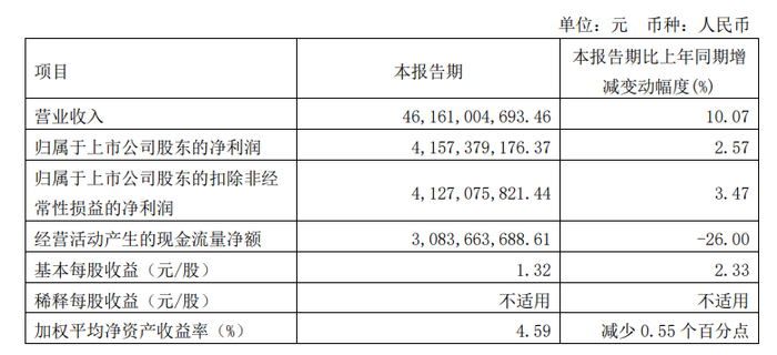 据万华化学2024年第一季度报告,该公司一季度营业收入为461.61亿元,同比增长10.07%;归属于上市公司股东的净利润为41.57亿元,同比增长2.57%。