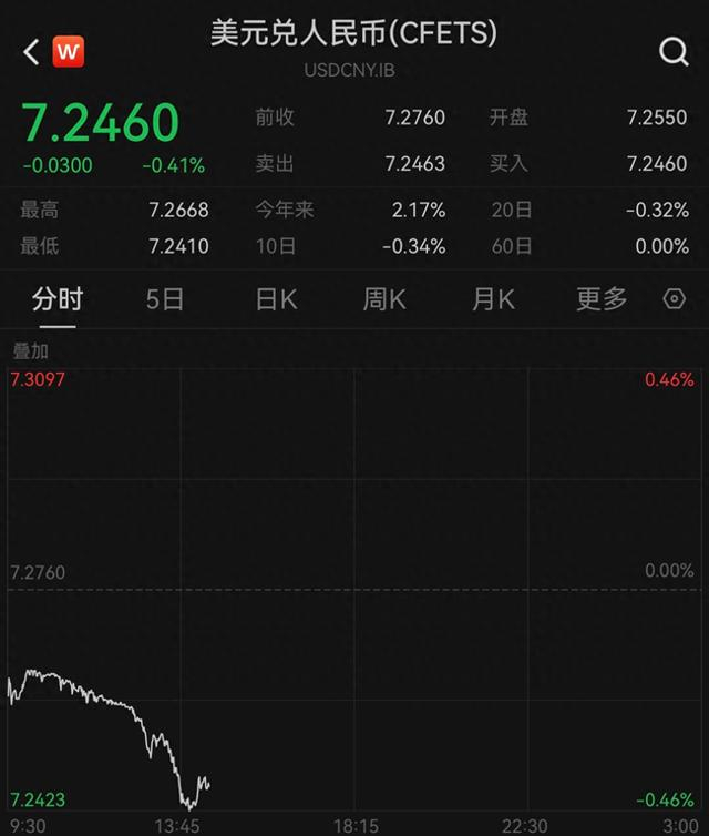 大幅升值!在岸、离岸人民币对美元汇率双双升破7.25