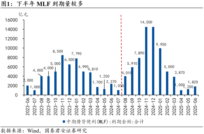 2)下半年MLF到期比较集中,共有4.68万亿元到期,若要全部置换,准备金率需要下调1.8%,或者央行购买同等数量的国债,而在当前准备金调降空间逐渐缩窄、货币政策强调保持正常向上收益率曲线的背景下,置换进程不会一蹴而就,因此MLF仍将在未来一段时期内作为银行的重要负债来源。