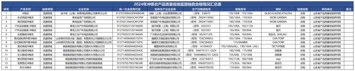 近期,山东省市场监督管理局公布了一则冲锋衣产品质量省级监督抽查结果公告,具体情况如下。