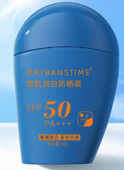 22. 标称广州市白云区优致化妆品厂生产的MAYBANSTIME雪肌润白防晒霜SPF50PA+++,不合格项目:成分比对。