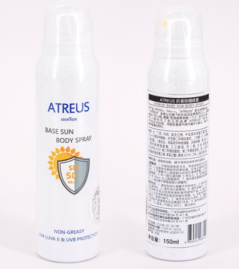 15. 标称广州艾瑞斯贸易有限公司生产的ATREUS奶香防晒喷雾,不合格项目:成分比对。