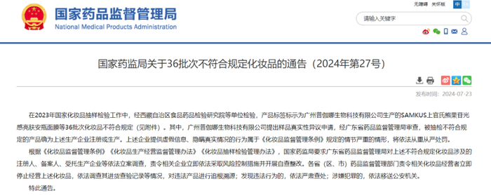 36批次不符合规定化妆品的通告