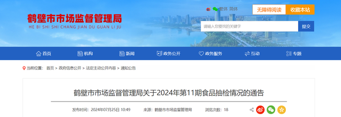 【河南省】鹤壁市市场监督管理局关于2024年第11期食品抽检情况的通告