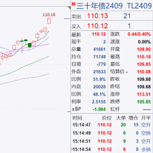 财联社7月25日讯(实习编辑 李春典 编辑 刘晨)央行系列降息组合拳对国债期货市场带来持续影响,本周各期限合约走强,直至今日,国债期货收盘涨跌不一,30年期主力合约涨0.40%报110.12元,创收盘新高;10年期主力合约跌0.04%报105.835元,盘中创历史新高;5年期主力合约跌0.05%,2年期主力合约跌0.01%。截至收盘,30年期国债期货收涨,其余国债期货均下跌。