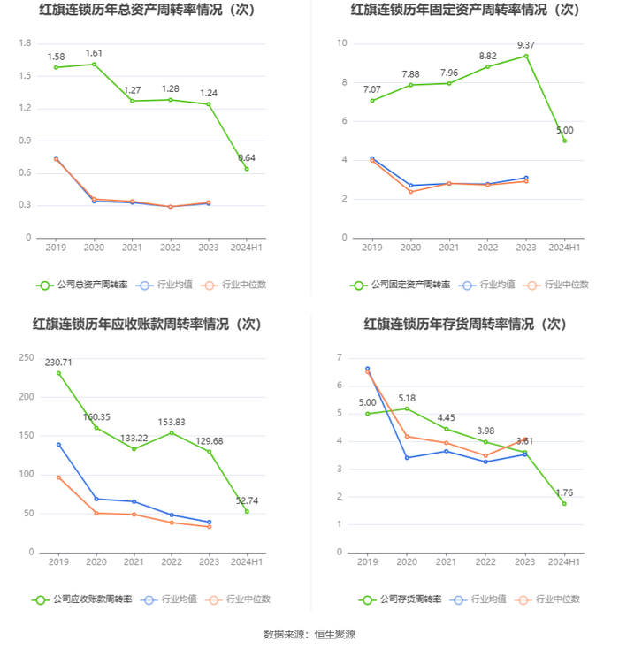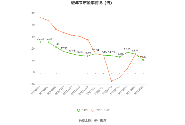 营运能力方面,2024年上半年,公司公司总资产周转率为0.64次,上年同期为0.63次(2023年上半年行业平均值为0.17次,公司位居同行业5/62);固定资产周转率为5.00次,上年同期为4.55次(2023年上半年行业平均值为1.62次,公司位居同行业11/62);公司应收账款周转率、存货周转率分别为52.74次、1.76次。