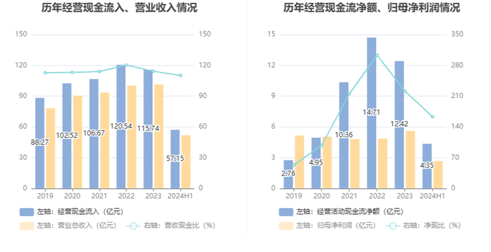 2024年上半年,公司营业收入现金比为110.20%,净现比为163.13%。