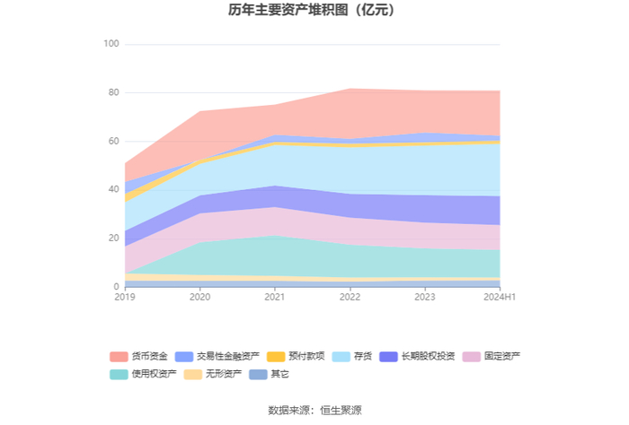 资产重大变化方面,截至2024年上半年末,公司交易性金融资产较上年末减少50.15%,占公司总资产比重下降2.48个百分点;货币资金较上年末增加6.89%,占公司总资产比重上升1.52个百分点;存货较上年末增加5.49%,占公司总资产比重上升1.43个百分点;长期股权投资较上年末增加5.25%,占公司总资产比重上升0.76个百分点。
