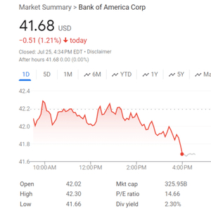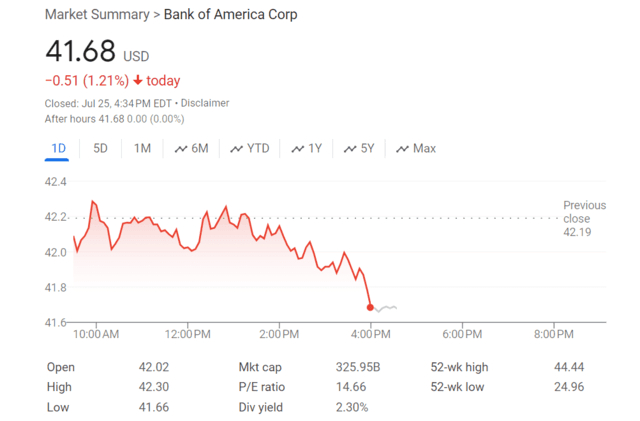 巴菲特最新的卖出消息出炉后,美银周四股价下跌1.2%,跌幅大于标普500指数大盘的0.5%下跌。