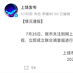 7月25日晚,上饶市政府新闻办公室官方微博通报称,该市已关注到此举报信息,市委立即成立联合调查组进行调查核实,调查情况将及时向社会公布。