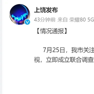 当天晚上不久后,上饶市委联合调查组发布通报,关注到网上有关举报万年县委领导毛某信息后,市委高度重视,立即成立联合调查组进行调查核实,调查情况将及时向社会公布。