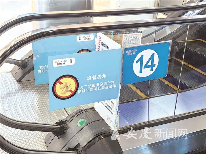 此外,近年来,穿洞洞鞋在乘坐电动扶梯时,不慎将鞋卷入缝隙的新闻也时有出现。对此,安庆一些商场和超市已发出安全提醒,如吾悦广场的各扶梯入口处均张贴温馨提示,提醒消费者:“为了您的安全,请勿穿拖鞋和洞洞鞋乘坐扶梯。”