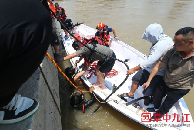 11时许,深潜队赶到了现场。没有片刻耽误,队员迅速换上潜水服,通过上游潜入江底探查情况,在探查到张锐被困的具体位置以及江底情况后,立即上岸商量营救方案。