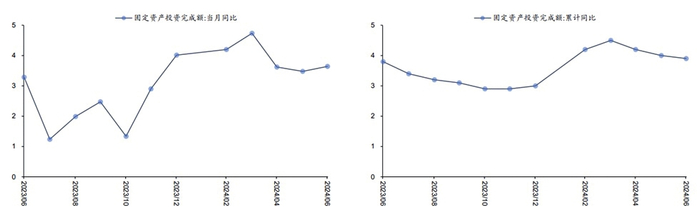 单月投资边际上行。1~6月,全国固定资产投资(不含农户)同比增长3.9%,较前值小幅度下行,与市场预期一致。单月来看,6月固定资产投资同比边际上则有所走强,当月同比增长3.6%,前值为3.5%,环比上月出现了正增长。