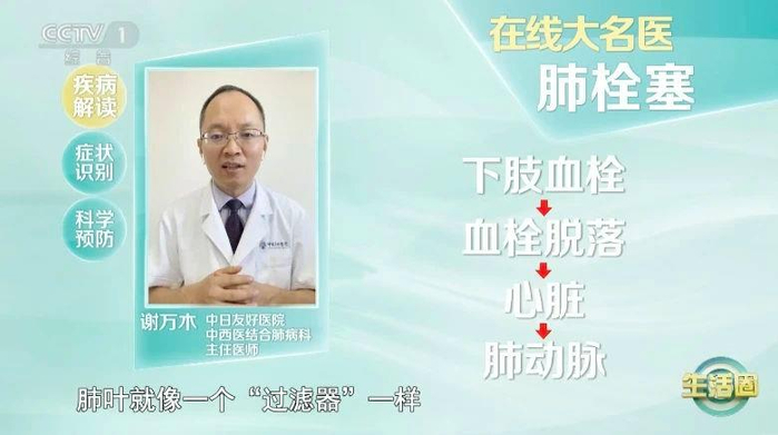 这种危险的血栓还有脱落风险,并且有可能会顺着静脉血管一路回流到肺动脉上,引发致命疾病肺栓塞,导致身体各个部位缺血缺氧甚至心搏骤停。在“猝死排行榜”上,肺栓塞排在第三位。