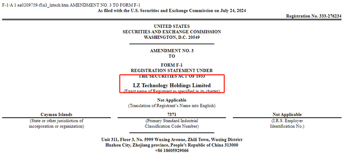 2024年7月24日,来自福建厦门的LZ Technology Holdings Ltd(以下简称“联掌门户”)在美国证监会(SEC)更新招股书,拟在美国纳斯达克上市,其股票代码为“LZMH”。 其早于2023年8月21日在SEC秘密递表,后于2023年12月22日公开披露招股书。