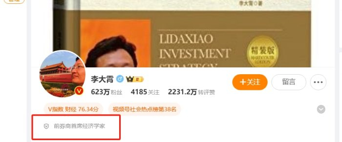 7月26日,英大证券首席经济学家李大霄微博简介更新,变更为“前券商首席经济学家”,截至目前,李大霄的微博粉丝有600余万。界面新闻记者从知情人士出获悉,李大霄已经从英大证券退休。