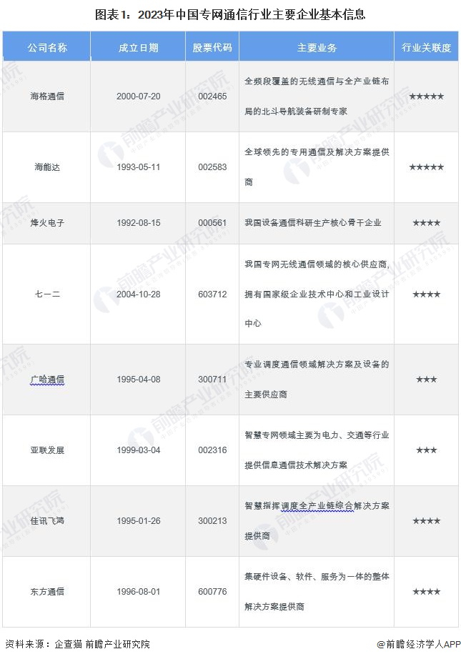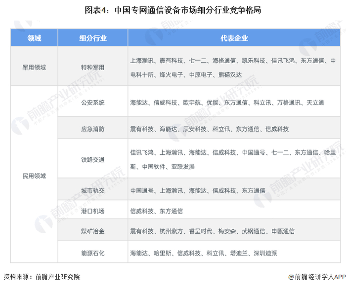 4、中国专网通信行业企业布局