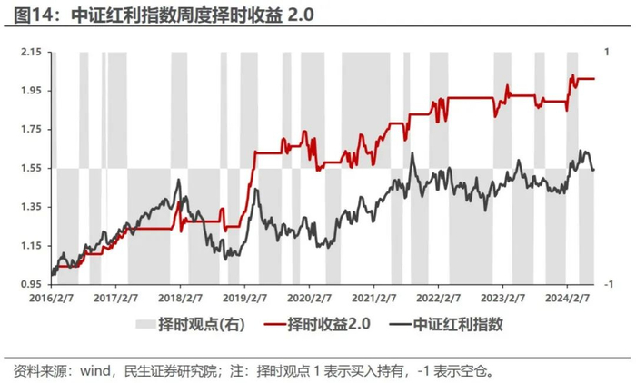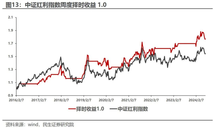 ➤ 基于全收益估值下的红利择时表现更加稳定。