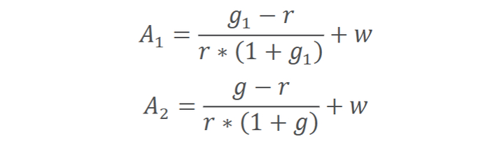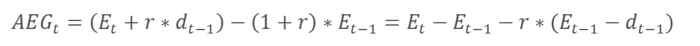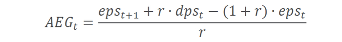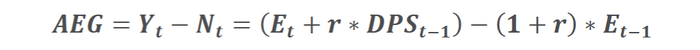 带息收益增长超过机会成本的部分,被称为超额收益增长(AEG,Abnormal Earnings Growth),其含义是公司的总体收益超过机会成本部分的价值: