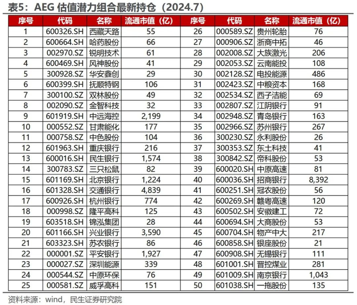 下表展示了AEG估值潜力组合的最新持仓。