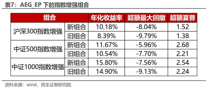 这三个组合中均有EP因子(单季度市盈率),这侧面说明了EP因子选股有效性。这里我们将其替换为AEG_EP因子,观察其表现。
