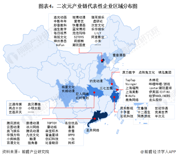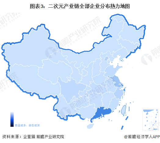 二次元产业链区域热力地图:企业集中在广东、上海、江苏、北京等地