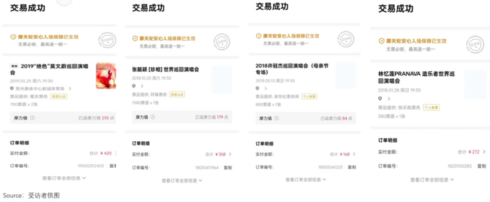 他翻出疫情前的购票记录,上面显示,几场知名歌手的演唱会门票,最贵的只花了358元,便宜的99元也可以拿下。