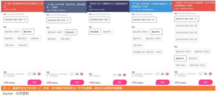 大城市都如此惨淡,三四线城市更等不到观众:五月天太原站655元的看台票,开售3天都没买完;杨千嬅宜昌站498元的看台票,在二手票务平台打折出售。