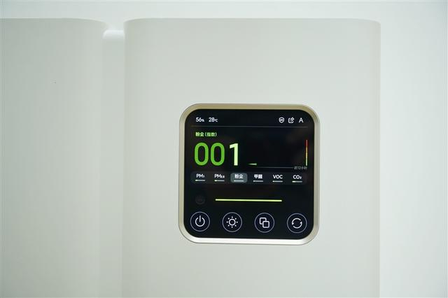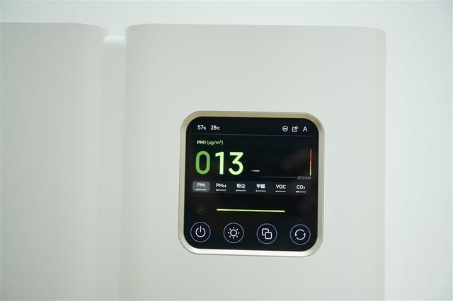 在显示屏上面可直观看到PM2.5、甲醛、粉尘、室内湿度、温度等信息,其中甲醛的数据可精确到0.001mg/m3。