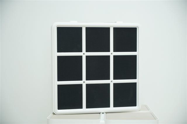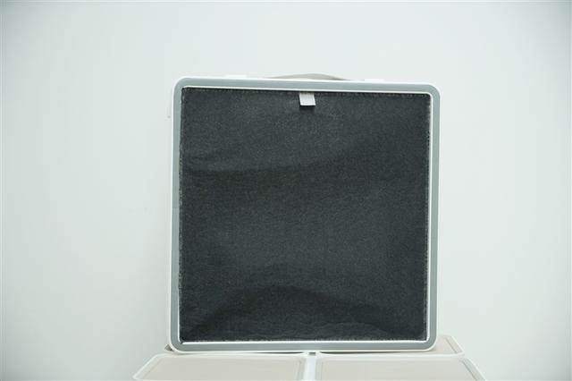 侧边拆开盖板后即可露出滤芯,均采用抽拉式安装,通过中效符合滤芯、碳素阵列滤芯、催化醛解滤芯、全效复合滤芯共5组专业滤芯,实现了十级复合深度净化的效果。