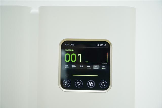 可实现TVOC 1小时去除率97.37%,3倍抑味能力、99.9%抗菌率,TVOC CADR 实测值 450m³/h。