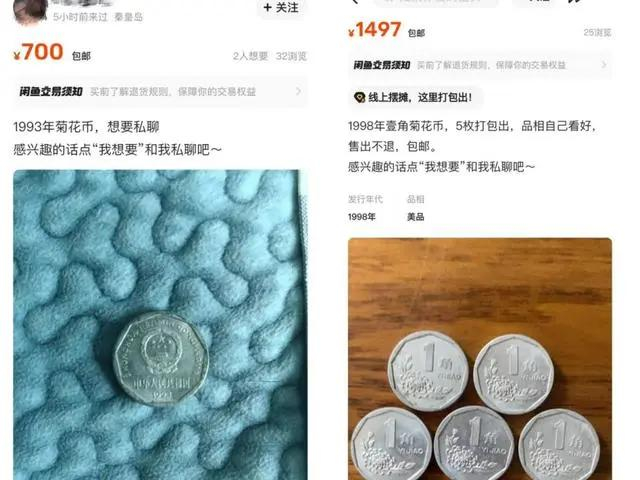 记者了解到,闲鱼上承载类似“颜色交易”的暗号不止“捷安特”。比如标价几百到几千元的1角硬币,实则是出售色情服务,而硬币上的年份就是服务者的年龄。“菊花1角硬币在2000年未公开发行,只出现在‘2000年硬币套装’中,所以价格高一些,散币可以卖到800元,其他年份的硬币价值一般不超过1元。”一位在闲鱼上正经出售“2000年硬币套装”的卖家告诉记者。