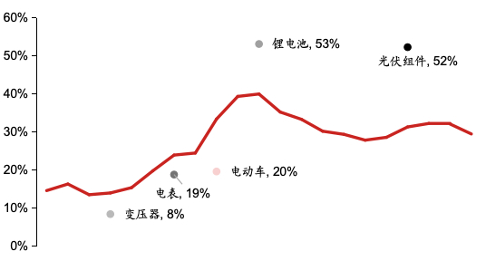 我们将中国电新行业各赛道全球产品进口渗透率数据与上述曲线进行比较。