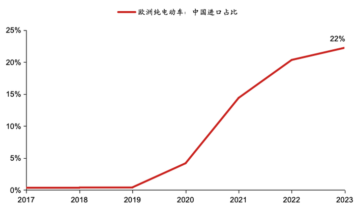 ▲图表18:2017-2023年欧洲电动车进口情况(按金额)