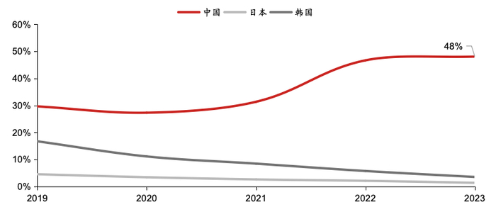 ▲图表16:2019-2023年欧洲进口锂电池渗透率情况