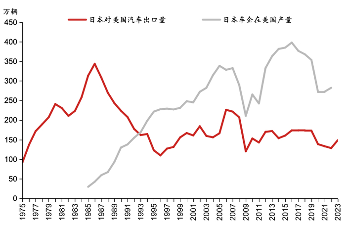 ▲图表7:日本汽车对美国出口量与美国当地产量情况