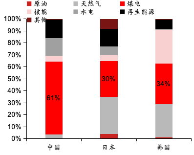 资料来源:中国电力网,BP《世界各国电力结构分析》,