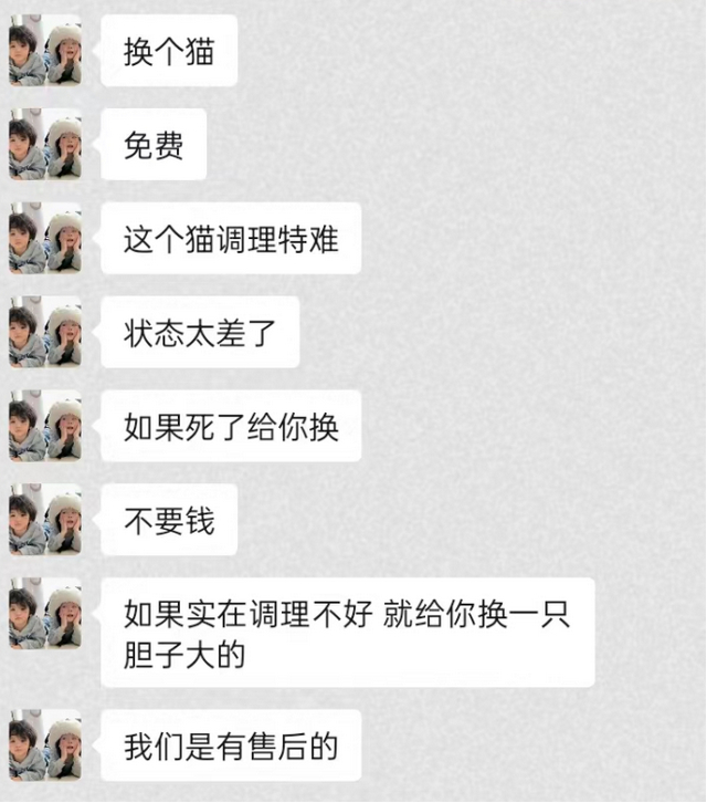 店家给求助人的换猫方案