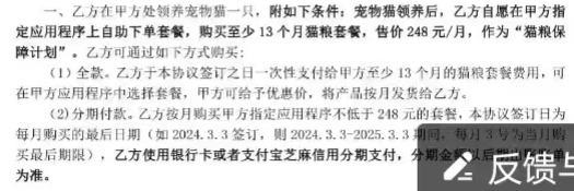 合同中关于“猫粮套餐”的部分条款