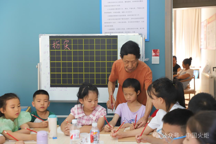 7月25日,贵州省贵阳市白云区大山洞街道关工委“五老”同志在街道二楼书法室组织辖区青少年开展“快乐暑期”系列活动硬笔书法课。