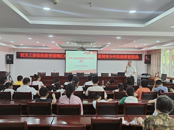 7月23日,重庆市江北区大石坝街道黑院墙社区关工委开展“关爱明天·普法先行”青少年法治宣传教育活动,加强未成年人保护法的宣传,引导青少年自觉守法,提高青少年的法律意识和自我保护能力。