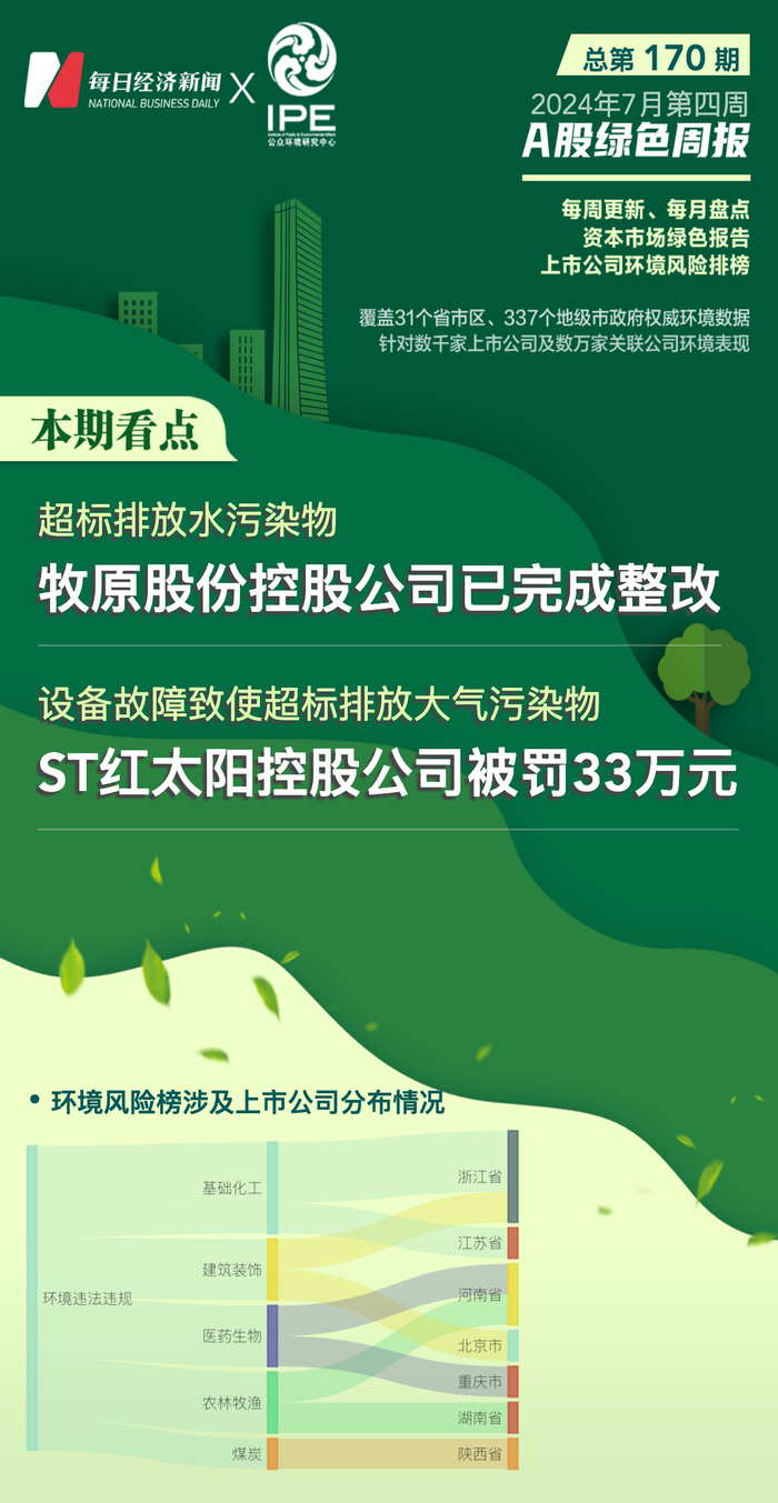 2024年7月第四周,哪些上市公司的环境保护与信披责任亮起了红灯?且看A股绿色周报第170期。